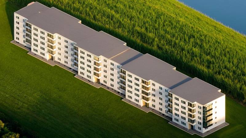 - Suprafața totală desfășurată a celor trei clădiri este de 11.835,33 mp, toate având funcțiunea de locuințe colective.