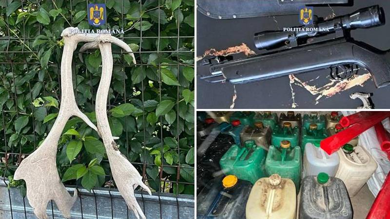 În urma efectuării perchezițiilor au fost descoperite și ridicate o armă neletală cu aer comprimat de tir sportiv (calibrul 4,5 mm) și două coarne de cerb din specia lopătar.
